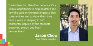 Jason Chow, Real Estate Investor: “I volunteer for UrbanPlan because it’s a unique opportunity to help students see how the built environment impacts their communities and to show them they have a voice in shaping it. I am constantly inspired by the students’ creativity, energy, and fresh perspectives.”